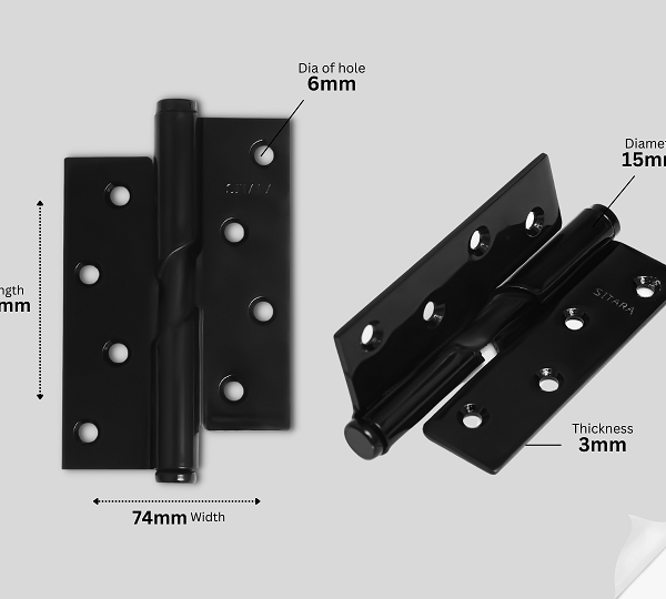 Crafted from premium mild steel, Sitara Bearing Hinges deliver friction-free, noise-free motion with long-lasting durability. Built with precision bearings for smooth performance and corrosion-resistant finishes for extended life, they ensure minimal wear even with frequent use. Easy to install with pre-drilled holes and standard screws, these hinges fit perfectly on wooden, metal, or composite doors, offering strength, style, and effortless swing for both residential and light commercial spaces.